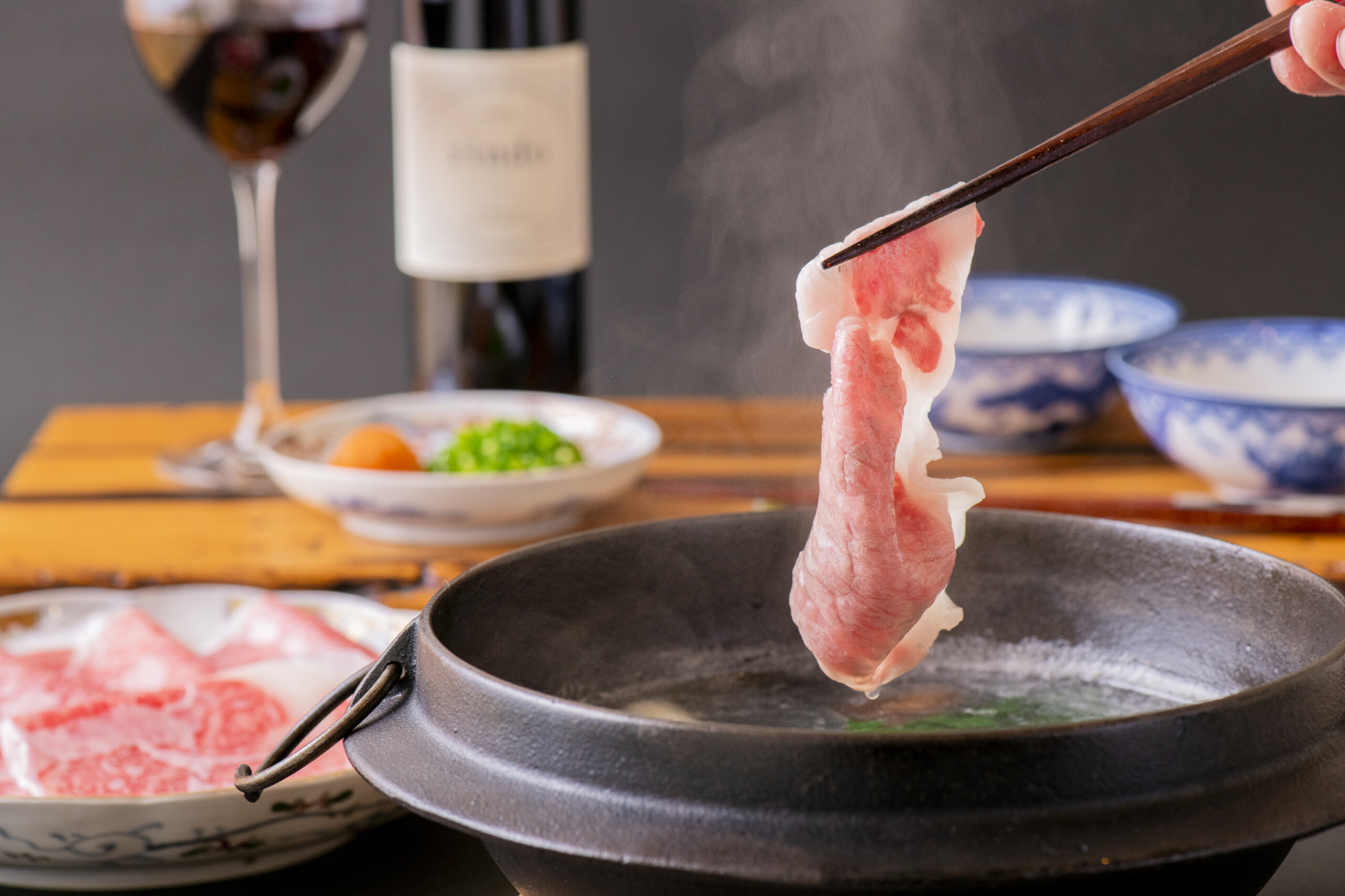 オーナー自ら、ふぐ刺しを引く技術を使ってお肉を手技で開く、超絶技法を採用しています。